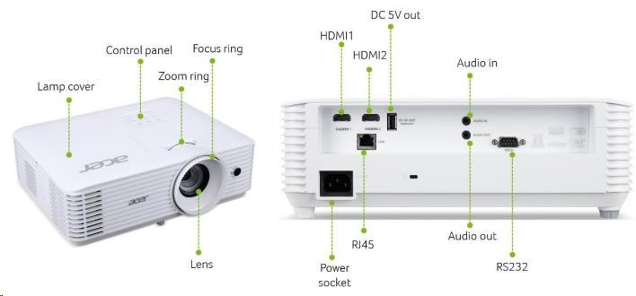 Přidat do oblíbenýchACER Projektor P5550, DLP 3D, 1080p (1920x1080), 5200 ANSI, 15 000:1, VGA, HDMI(MHL), HDMI, RJ45, repro 1x10W, 2.73Kg, L