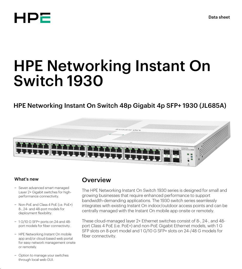 HPE Networking Instant On Switch 48p Gigabit 4p SFP+ 1930 (JL685A)