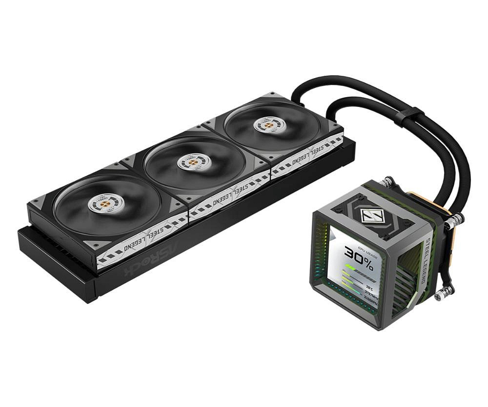 ASROCK Vodní chladič Steel Legend Dark 360 LCD, 3x120mm, LGA1851, AM5, černá