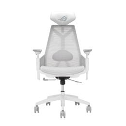 Herní židle ROG Destrier Core ergo s futuristickou estetikou, všestranným nastavením sedadla pro dokonalé držení těla, mobilní herní opěrky rukou a vyrobená z odolného polyamidového nylonu a prodyšné síťoviny pro pohodlné herní maratony.
