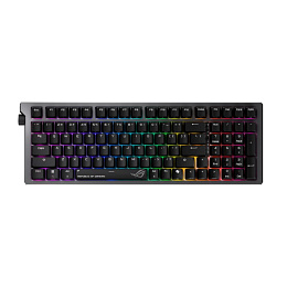 ROG Strix Morph 96 Wireless: Custom herní klávesnice s mechanickými spínači ROG NX V2 s funkcí hot-swap, PCB s orientací na jih (south-facing), připojením ve třech režimech, bezdrátovou technologií ROG SpeedNova, konstrukcí gasket mount s tlumicími vrstvami, třemi nastavitelnými úhly náklonu, odolnými ROG doubleshot ABS klávesami a podporou MacOS.
