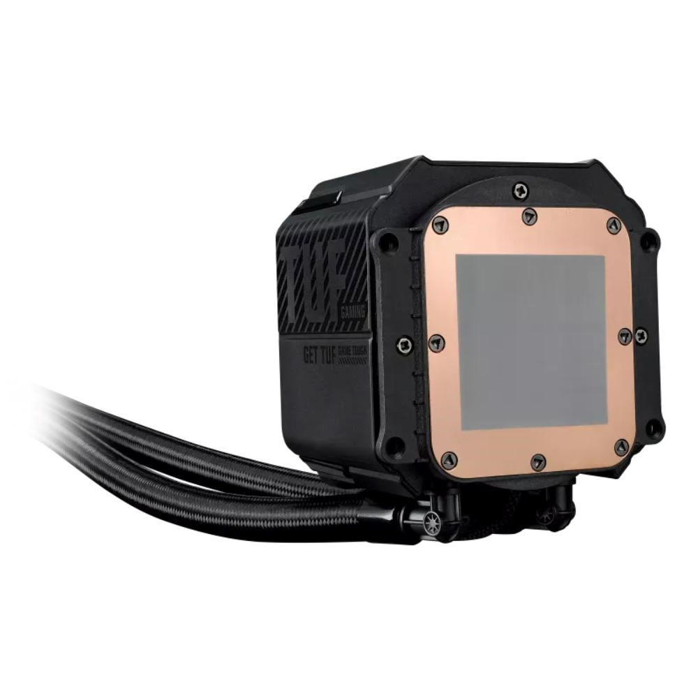 TUF Gaming LC III 360 ARGB all-in-one vodní chladič CPU s předinstalovanými a integrovanými trojitými ventilátory navrženými pro vysoký průtok vzduchu a statický tlak; účinné čerpadlo pro zajištění optimální provozní teploty CPU.