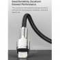 Flexibilní a odolný kovový kabel Baseus Cafule s konektory USB-C a Lightning vám umožňuje přenášet data a nabíjet baterii v zařízeních Apple.