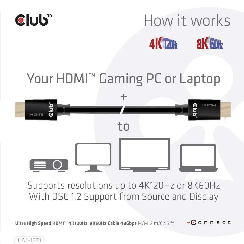 BAZAR - Club3D Kabel Ultra Rychlý HDMI™ Certifikovaný 4K 8K60Hz 48Gbps (M/M), 1m, 30 AWG - Poškozený obal (Komplet)