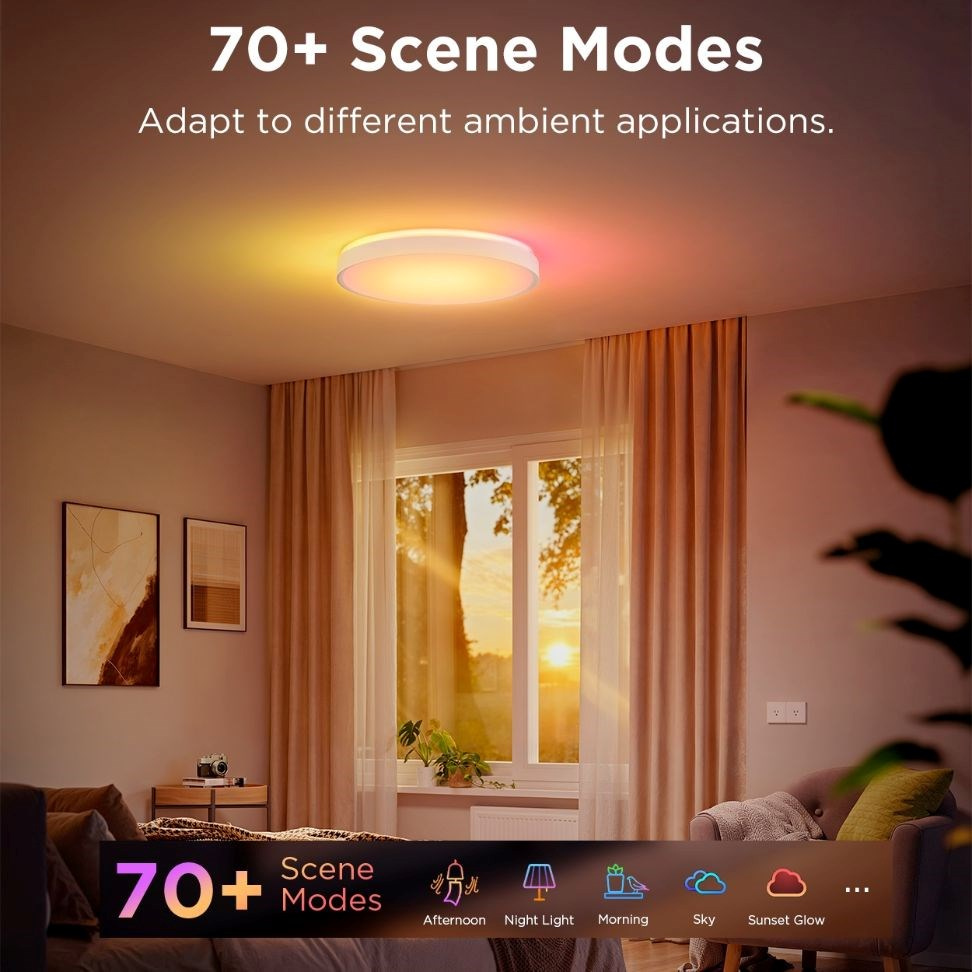 Jestli hledáte chytré stropní světlo, které umí víc než jen svítit, tak Govee bude skvělou volbou. Toto elegantní, duální světlo kombinuje technologii RGBIC s bílými LED diodami a nabízí tak živé barevné podsvícení a zároveň nastavitelnou bílou barvu v rozsahu od teplých 2700 K až po chladných 6500 K. Díky více než 70 přednastaveným scénám a funkci synchronizace s hudbou se snadno přizpůsobí vaší náladě i příležitosti – ať už pořádáte večírek nebo si chcete odpočinout. Ovládání je jednoduché prostřednictvím aplikace Govee Home nebo hlasem přes asistenty Alexa a Google Assistant a světlo také funguje s protokolem Matter, takže ho zařadíte i do HomeKitu nebo Samsung Smart Things. Funkce DreamView navíc umožňuje synchronizaci s dalšími světly Govee pro jednotný světelný zážitek v celém prostoru. S jasem až 4300 lumenů a možností plynulého stmívání je toto svítidlo ideální volbou pro moderní domácnost.