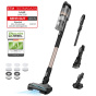 Promyšlený design vysavače usnadňuje každodenní používání – baterii jednoduše odejmete a dobijete samostatně, bez nutnosti manipulace s celým přístrojem. Díky plochému kloubu dosáhnete i pod nízký nábytek, kam se běžný vysavač nedostane. Sestavení a výměna nástavců je otázkou vteřin, takže můžete plynule přecházet mezi různými typy úklidu bez zdržování.