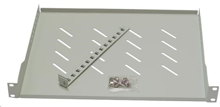 BAZAR - LEXI-Net 19" police s perforací 1U/650mm, nosnost 45kg, zadní nastavitelný úchyt, šedá - prohnutá