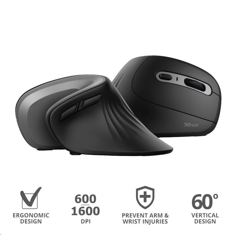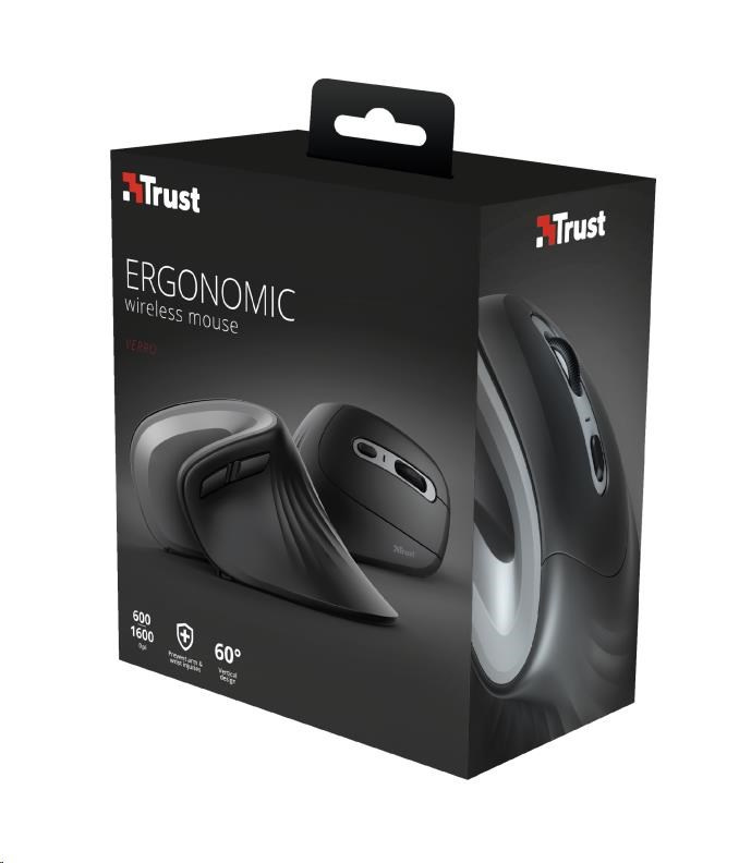 BAZAR - TRUST ergonomická vertikální myš Verro Wireless Ergonomic Mouse, black - Poškozený obal (Komplet)