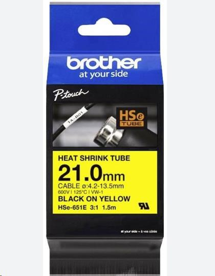 BROTHER smršťovací bužírka - HSE-651E žlutá pro H300 H500 E550 P700 P750 D800 P900 P950 - 21mm / 4,2-13,5mm / 3:1