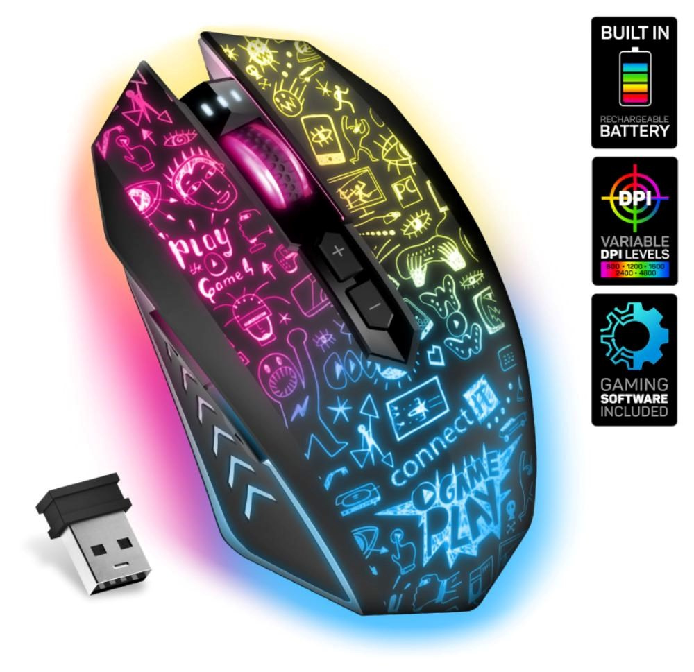 CONNECT IT DOODLE 2 PRO Herní myš, bezdrátová, černá