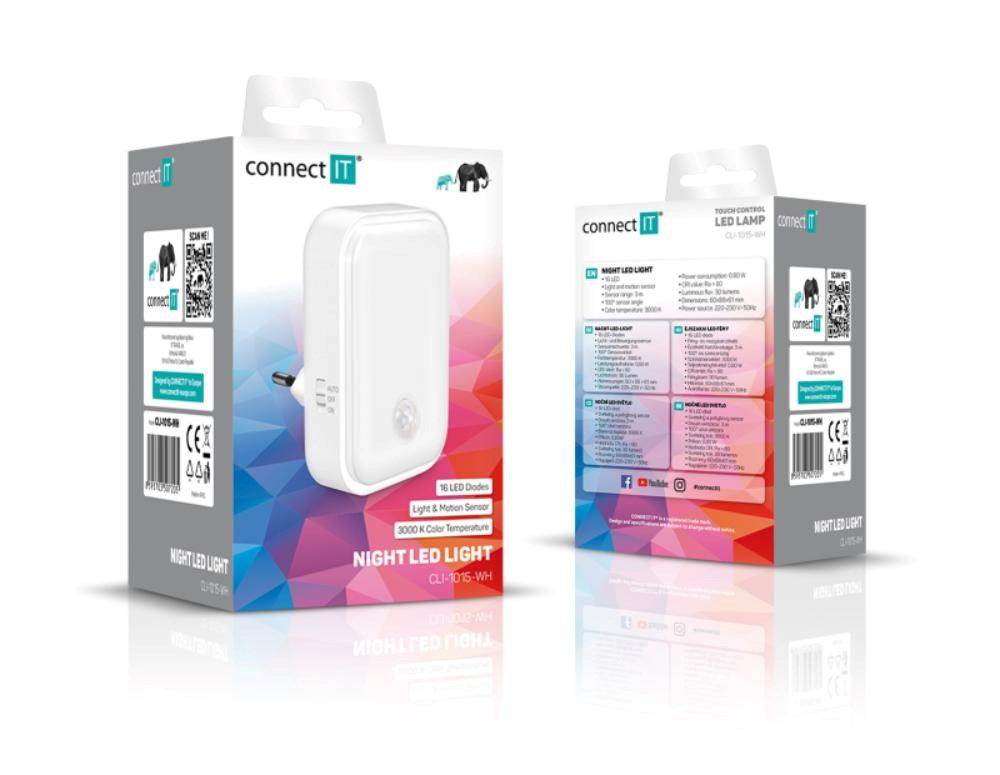Světlo disponuje posuvníkem, který umožňuje zapnout/vypnout světlo a nastavit režim automatického zapnutí při zaznamenání pohybu v šeru. Světlo stačí jednoduše zapojit do libovolné zásuvky a při příkonu 0,80 W se nemusíte bát spotřeby elektrické energie. LED zdroj světla disponuje světelným tokem 30 lumenů.