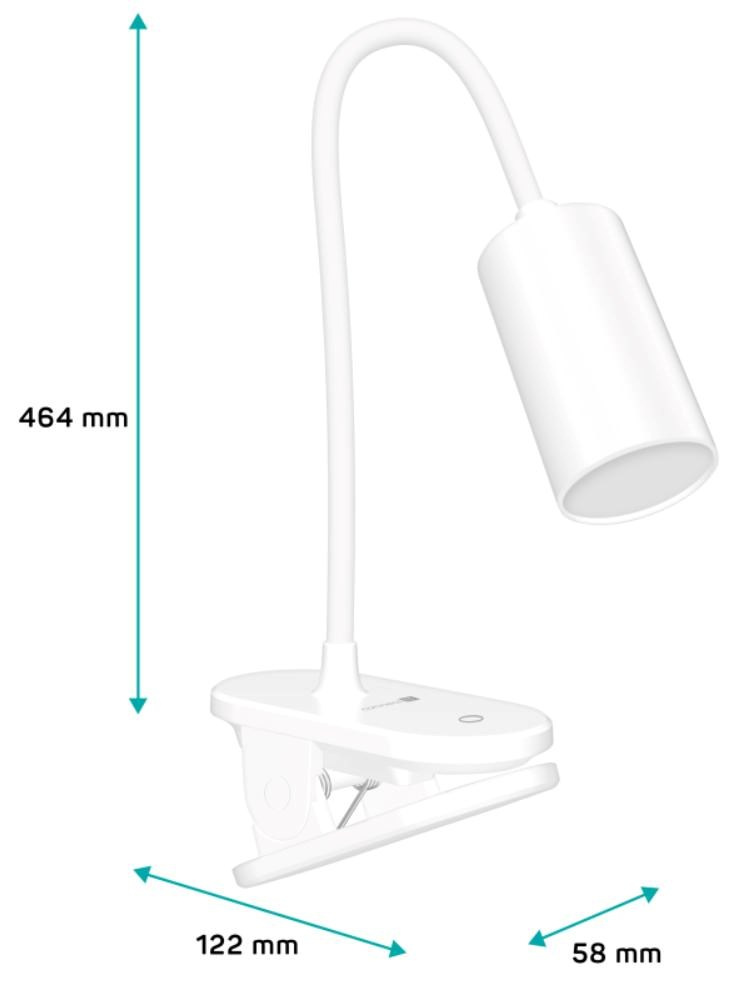 Díky flexibilnímu rameni nastavíte dokonalý úhel pro jakoukoliv práci. Lampička disponuje praktickým dotykovým spínačem, který umožňuje zapnout/vypnout lampu, plynule nastavit úroveň jasu světla nebo nastavit barevnou teplotu světla ve 3 různých úrovních (3000/4500/6500 K). Pomocí klipu můžete lampičku umístit nejen na Váš pracovní stůl, ale například na poličku, noční stolek či rám postele.