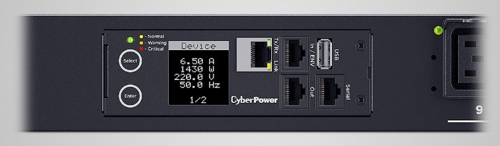 CyberPower PDU81405 je síťová jednotka distribuce napájení ideální pro datová centra a podnikové aplikace, která poskytuje místní/vzdálené monitorování v reálném čase a ovládání zapínání/vypínání jednotlivých zásuvek pro vzdálené restarty, plánované zapnutí/vypnutí a další. Funkce Daisy Chain také umožňuje monitorovat a ovládat několik PDU připojených dohromady pod jednou IP adresou.