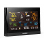 Hlavní jednotka má snadno čitelný inverzní barevný VA displej, který zobrazuje předpověď počasí, vnitřní a venkovní teplotu, hodnotu barometrického tlaku, rychlost a směr větru, hodnotu dešťových srážek, čas a datum, hodnotu venkovního rosného bodu, teplotního indexu a pocitové teploty, Wind Chill, intenzity slunečního záření, UV indexu, rizikový čas expozice a čas východu a západu Slunce.