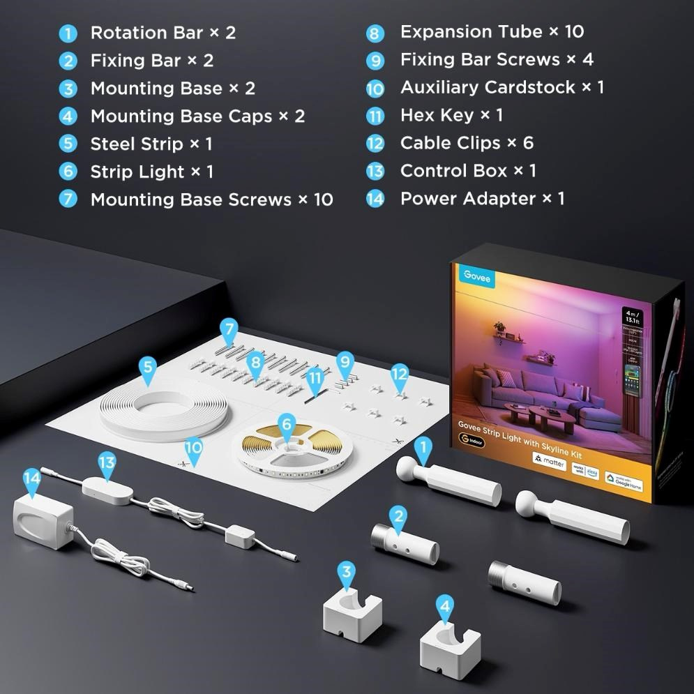 Objevte nový rozměr chytrého osvětlení s Govee Skyline kitem. Tento 4metrový zavěšený LED pásek přináší působivý efekt plovoucího nasvícení stěn a dokáže proměnit každý interiér v moderní a dynamické prostředí. Díky špičkovým světelným technologiím si můžete užít dokonale plynulé přechody i fascinující barevné kombinace.