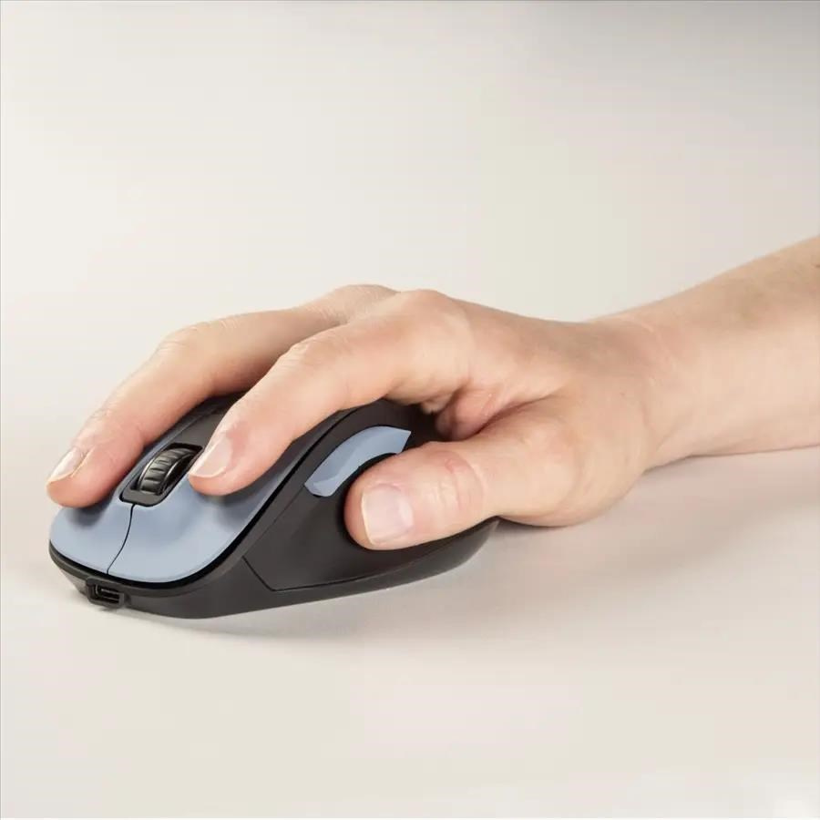 - 6tlačítková bezdrátová nabíjecí optická myš s přesným snímačem a tichými tlačítky, pro nerušenou práci s myší - snímač s technologií blue wave umožňuje použití na téměř jakémkoli povrchu - ergonomický tvar vhodný pro praváky - boční tlačítka pro snadné ovládání funkce vpřed/vzad v prohlížeči - DPI tlačítko pro změnu rozlišení (max. 1600 DPI) - integrovaný Li-Ion akumulátor, nabíjení pomocí USB-C kabelu - inteligentní řízení spotřeby energie aktivuje Stand by režim, pokud myš nepoužíváte - samostatný vypínač pro úsporu energie - výdrž myši je cca 75 dní při denním používání - 2,4 GHz technologie pro spolehlivý a nerušený přenos signálu - Smart Link technologie – snadné a rychlé připojení - nano USB přijímač může být trvale zasunutý v PC - polymerem potažené kluzné plochy pro plynulý pohyb myši - pogumované rolovací kolečko Systémové požadavky: - operační systém: Windows 11/10/8/7/Vista/XP, Mac OS 10.10 nebo vyšší Technické parametry: - připojení: USB-A vidlice (2,4 GHz RF) - rozlišení: 800/1200/1600 DPI - počet tlačítek: 6 - rolovací kolečko - napájení: Li-Ion akumulátor - nabíjení: USB-C zásuvka - rozměry: 8,5 x 12 x 4,2 cm - barva: polární modrá Obsah balení: - optická bezdrátová myš MW-500 Recharge - USB přijímač - USB nabíjecí kabel USB-A – USB-C - návod k použití.