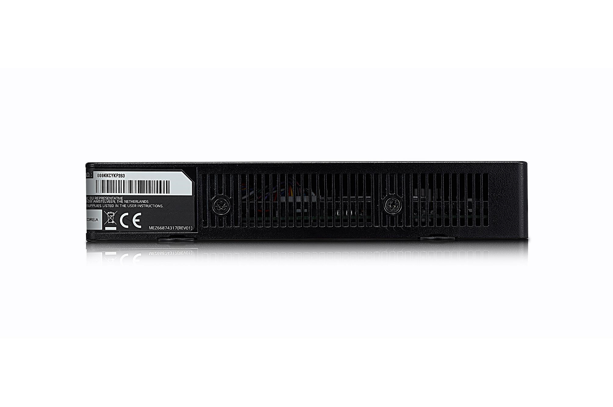 Spodní zadní stranaNapájení, HDMI Out, Digitální audio výstup (Optický), Audio Line Out (Jack), Externí IR (Jack), RS-232C ovládání TV (Jack), Externí RS-232C ovládání (Jack), Servisní port, Vstup pro anténní kabel, LAN port