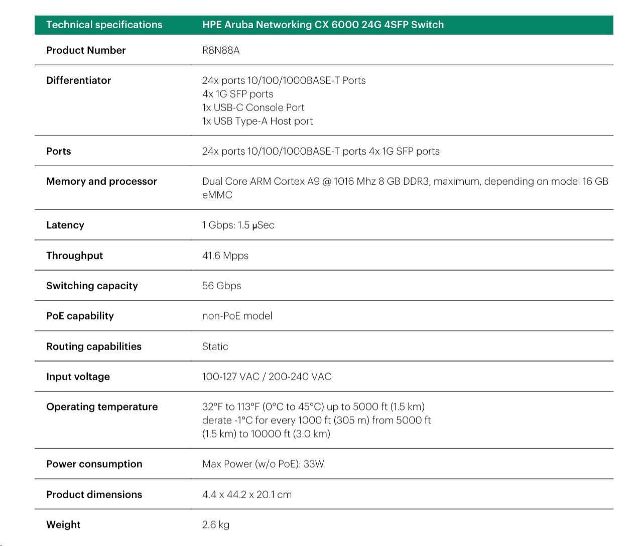 HPE Aruba Networking CX 6000 8p 10M/100M/1G Class4 PoE 2p SFP 1G 67W Switch.
