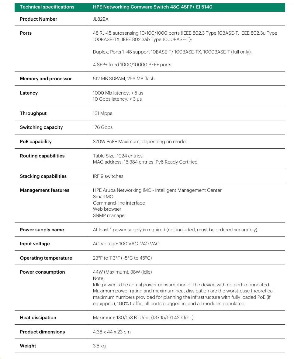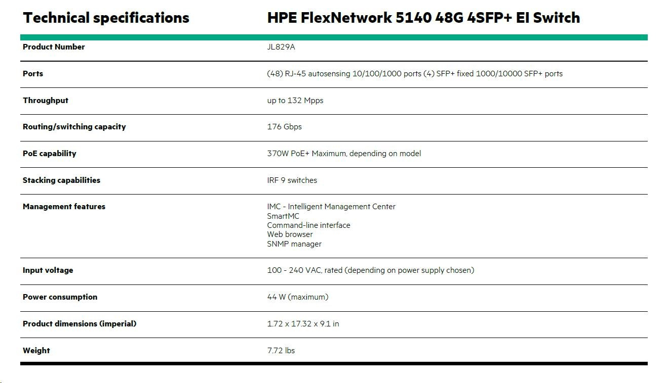 HPE Networking Comware Switch 48G 4SFP+ EI 5140 | JL829A | |