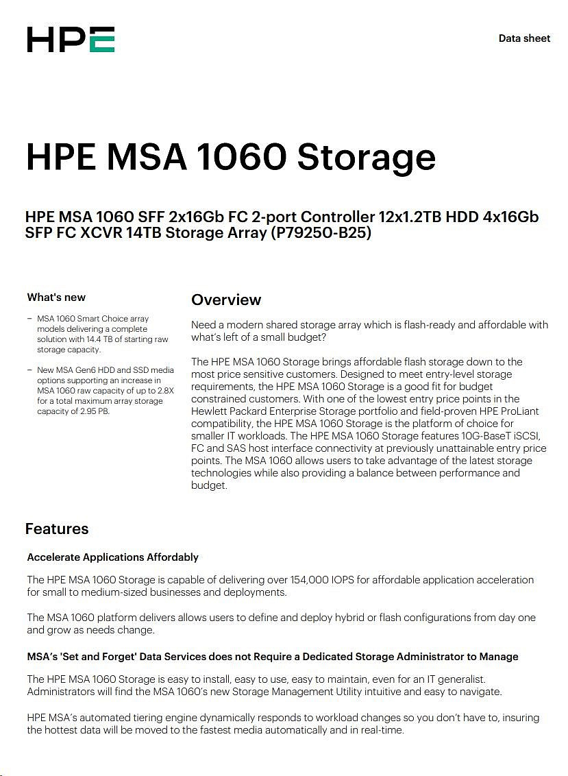 HPE MSA 1060 SFF 2x16Gb FC 2p Array.