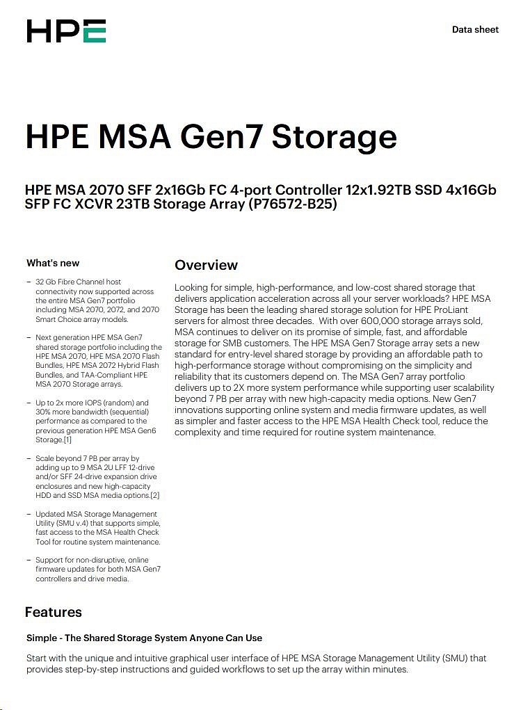 HPE MSA 2070 LFF 2x10/25GbE iSCSI Array.