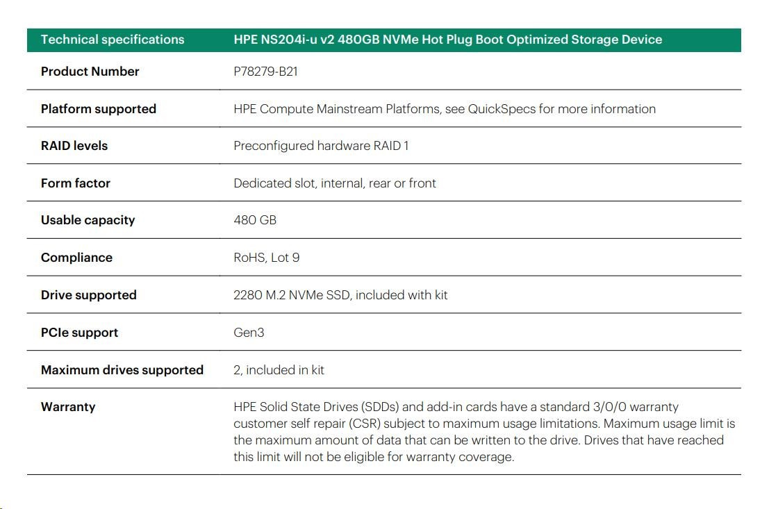 HHPE NS204i-u v2 480GB NVMe Hot Plug Boot Optimized Storage Device.