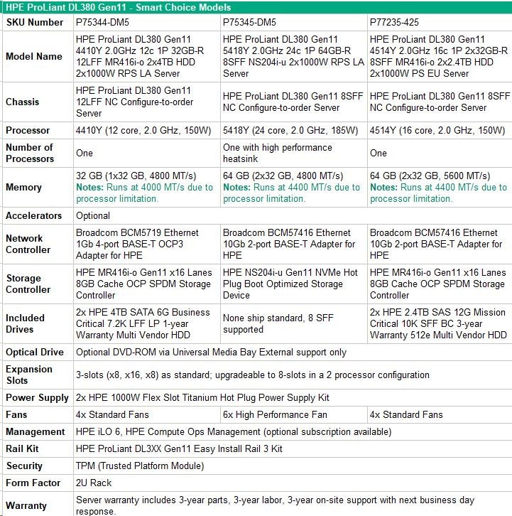 Model Name HPE PL DL380g11 4514Y (2.0/16C/30M) 32G MR408i-o/4G 8-26SFF 1000Wti 2x10G-T
