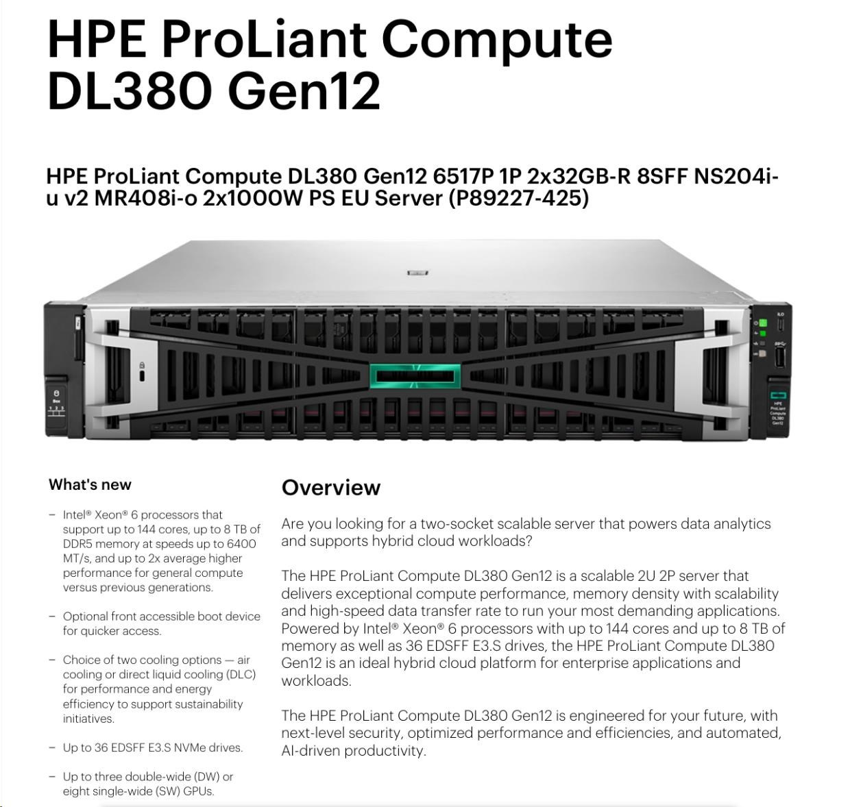 HPE PL DL380g12 6515P (2.2/16C) 2x32G (P69727) 2x480G MR408i-o 8SFF 2x1000W 2p10G-T NBD333 Smart Choice.