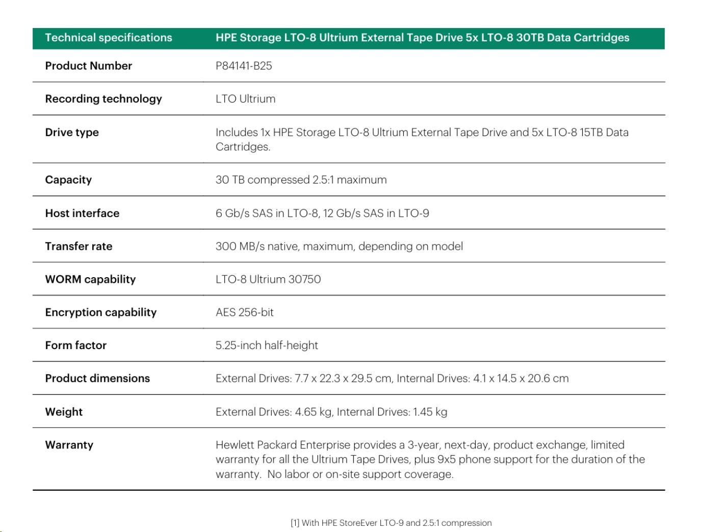 HPE Storage LTO-8 Ultrium External Tape Drive 5x LTO-8 30TB Data Cartridges