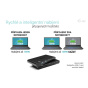 - Široká konektivita: USB-C a USB-A porty (až 5 Gb/s), audio jack, LED indikátory