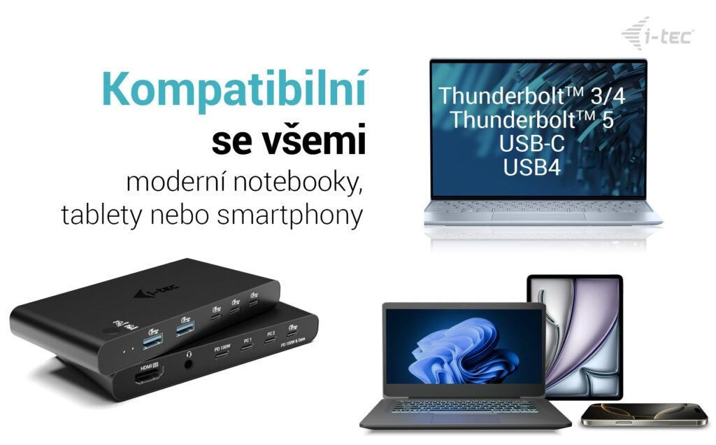 Ať už používáte Windows, macOS, Linux, Android, ChromeOS nebo iPadOS, tato stanice vám usnadní práci s více zařízeními – doma, v kanceláři i na cestách.