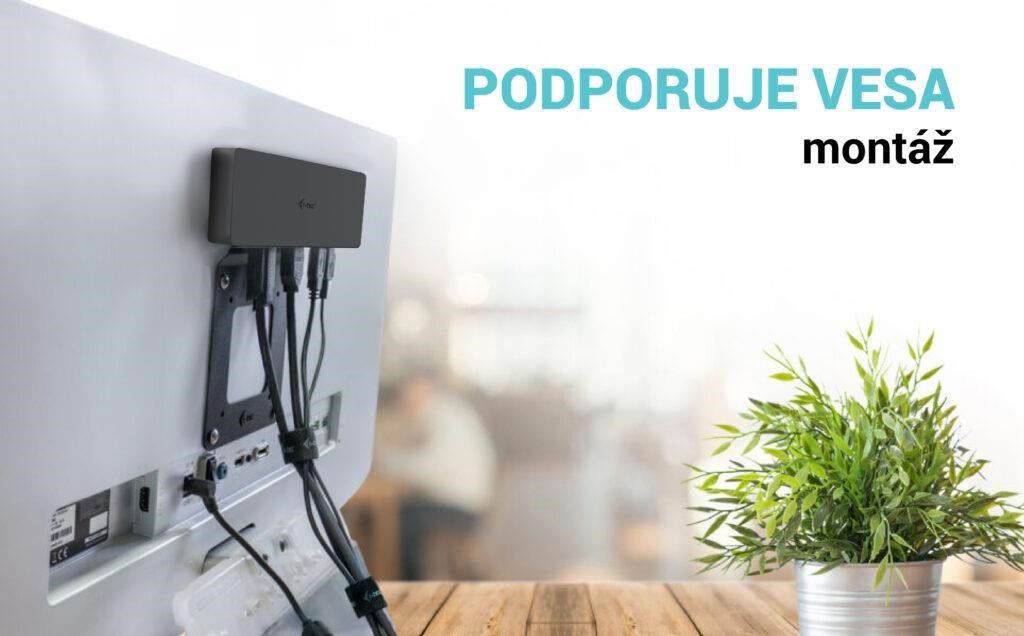- Dokovací stanice je kompatibilní pro vertikální montáž za monitor s podporou montáže VESA.