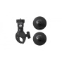 Montážní sada kamery na motorku Insta360. Obsahuje objímku na řidítka, dva samolepicí držáky na helmu, dva adaptéry se stativovým závitem, adaptér s vnitřním stativovým závitem, pojistné šrouby a plastové vložky. Součástí sady je i šestihranný klíč a utahovací nástroj..