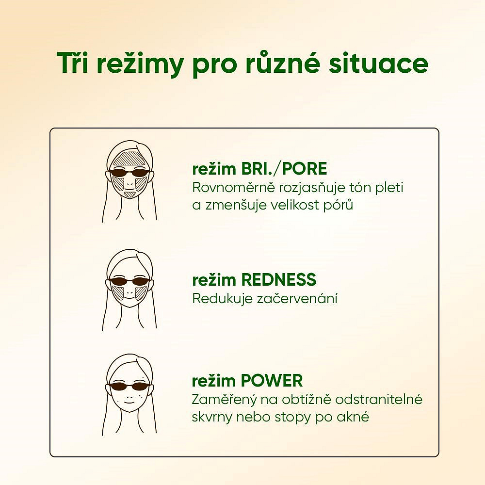 Přístroj nabízí tři expertní režimy, které se zaměřují na nejčastější problémy pleti:
