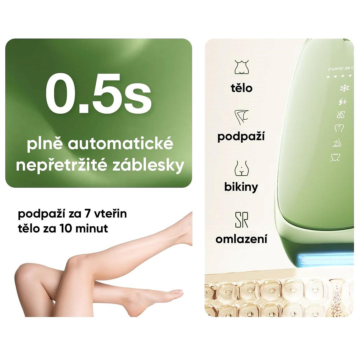 - Cílená péče pro celé tělo: Několik režimů a úrovní intenzity pro bezpečné ošetření nohou, rukou, podpaží, oblasti bikin i obličeje.