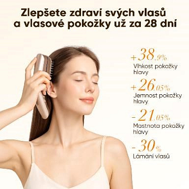 - Péče o vlasy a pokožku hlavy: Speciální hřebenový nástavec a sérum zpevňují pokožku hlavy, omlazují vlasové folikuly a bojují proti vypadávání vlasů.
