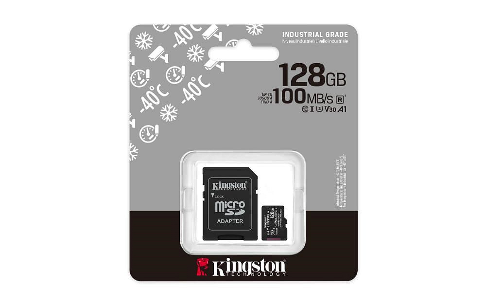 Průmyslová microSD karta společnosti Kingston je navržena a testována tak, aby odolala těm nejnáročnějším vlivům prostředí. Díky provozní teplotě od -40 °C do 85 °C dokáže normálně fungovat v extrémních pouštních vedrech i v mrazivých podmínkách. Karta využívá špičkový režim pSLC, který zajišťuje vysoké přenosové rychlosti až 100 MB/s při čtení a 80 MB/s při zápisu. Je dimenzována až na 3840 TBW s 30 000 P/E cykly a obsahuje sadu vestavěných funkcí specifických pro vysokou odolnost, výkon a průmyslové potřeby. Kingston Industrial microSD se dodává s adaptérem UHS-I SD a je k dispozici v kapacitách od 8 GB do 128 GB.