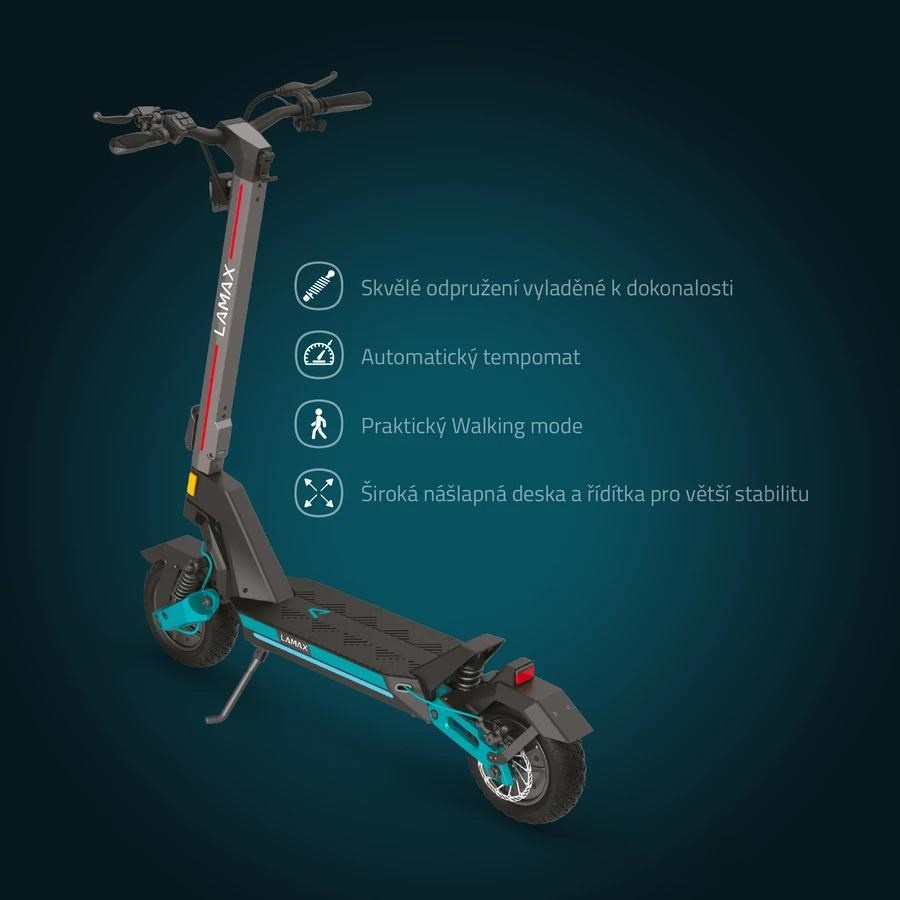 Užij si pořádnou jízdu, ať už vyrážíš do školy, práce nebo za zábavou. Elektrická koloběžka LAMAX eTank SA70 tě doveze rychlostí až 25 km/h klidně i 70 km daleko. Její moderní industriální design a 10,5palcové pneumatiky s?extra vyztuženým pláštěm odolným proti defektům a skvělou přilnavostí zvládnou každý terén. Díky přednímu i zadnímu odpružení se povezeš jako na obláčku a hezky stabilně. Opomenout nesmíme ani silné 2×800W motory s rekuperací. Svištět si to můžeš, i když nejsi žádný drobek, nosnost má koloběžka až 150 kg. Všechno, co potřebuješ vědět o svojí jízdě, ti ukáže velký přehledný LCD displej, včetně toho, který ze čtyř rychlostních stupňů a dvou výkonnostních režimů používáš. Bezpečnost zajišťuje ochrana proti nechtěnému rozjezdu a LED osvětlení celé koloběžky. Pevná konstrukce s velkou nášlapnou plochou se dá snadno a rychle složit a koloběžka má i parádní zabezpečení proti nenechavcům.