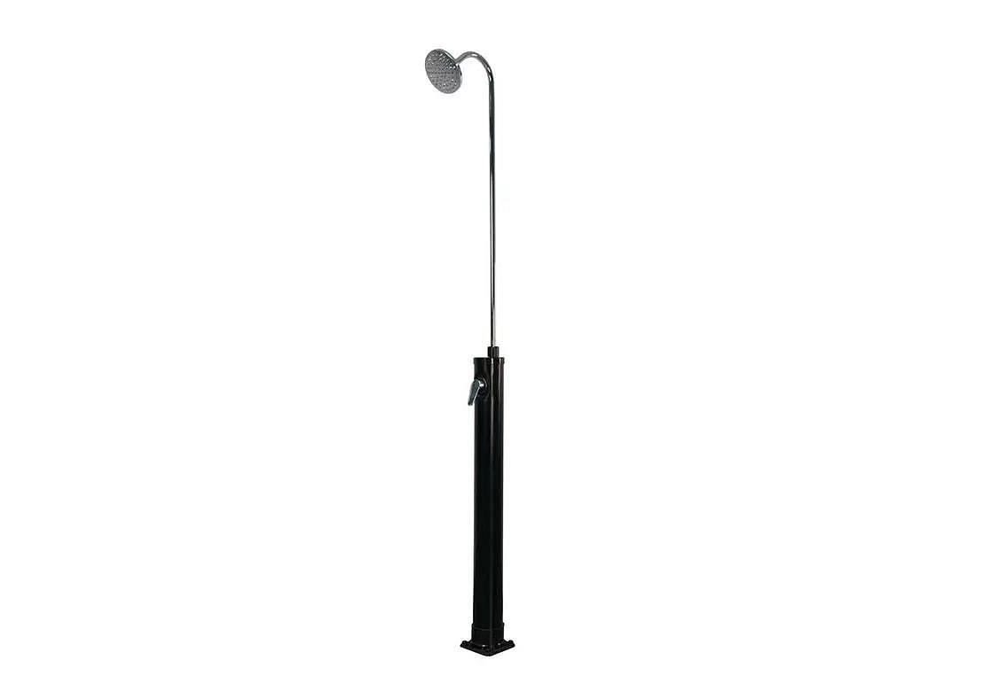 Zahradní dvoudílná a skladná sprcha DUO s objemem 10 l pro venkovní použití zajistí ohřev vody přiváděné ze zahradní hadice a tím perfektní pocit pohodlí při sprchování teplou nebo vlažnou vodou. Sprcha má pákovou baterii. Ohřev vody zajišťuje sluneční záření a tělo sprchy, které funguje jako solární kolektor. Pro sprchování musí být zahradní sprcha stále napojena na vodovodní řad. Není-li napojena, nelze se sprchovat. Sprcha se kotví pomocí 4 šroubů (nejsou součástí balení) pevně k zemi, čímž je zajištěna její perfektní stabilita.