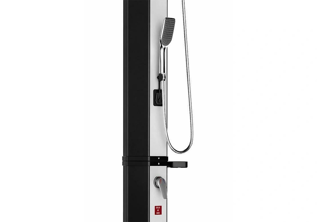 Sprcha je též vybavena ventilem pro možnost nastavení teploty výstupní vody. S ohledem na teplotu vody uvnitř sprchy, která může dosahovat až 60 °C, se doporučuje nejprve natočit ventil vpravo, jeho vychýlením směrem od těla sprchy pustit studenou vodou a následovně vodu domíchat na požadovanou teplotu natáčením ventilu směrem vlevo. Sprcha je vyrobena z plastu.