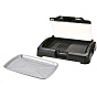 Pokud patříte mezi fanoušky grilování a rádi byste si připravili svou pochoutku i když venku zrovna prší, náš elektrický gril EG-1300 splní vaše očekávání. Je vhodný pro přípravu různých druhů grilovaného masa, ryb, zeleniny, sendvičů apod. Gril s otevíracím krytem s temperovaného skla kromě běžného grilování na otevřeném grilu, umožňuje grilovat i se zavřeným krytem (částečné dušení). Dvojitá grilovací deska je opatřena nepřilnavou vrstvou, aby se Vám na grilu nic nepřipeklo. Žebrovaný a hladký povrch umožňuje grilování, smažení a podobně. EG-1300 umožňuje nastavení výkonu a zvolení typu propečení pro takové pečení/grilování, díky čemuž můžete pohodlně grilovat různě pokrmy. Nižší teplota je vhodná pro přípravu sendvičů, zatímco vyšší teplota je ideální pro přípravu šťavnatých steaků. Steaky jsou tak lahodně šťavnaté, sendviče vždy správně zapečené a zelenina úžasně křehká. Díky vyjímatelnému otevíracímu krytu, grilovací desce a tácku na olej je čištění tohoto grilu jednoduché a rychlé.