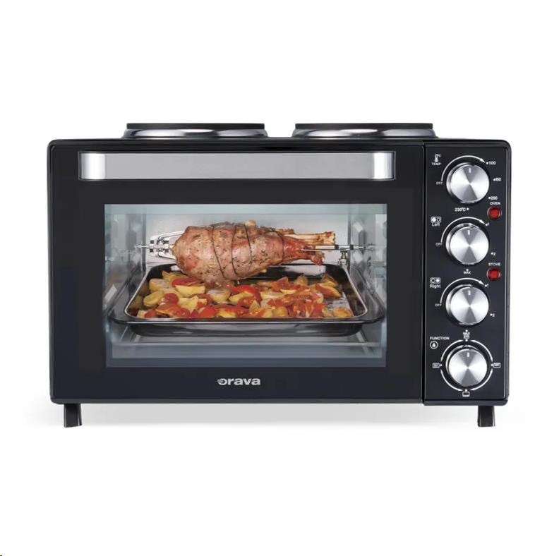 Orava Elektra-X28 elektrická trouba s dvouplotýnkou, 28 L, 2600 W, grilovací rošt, černá