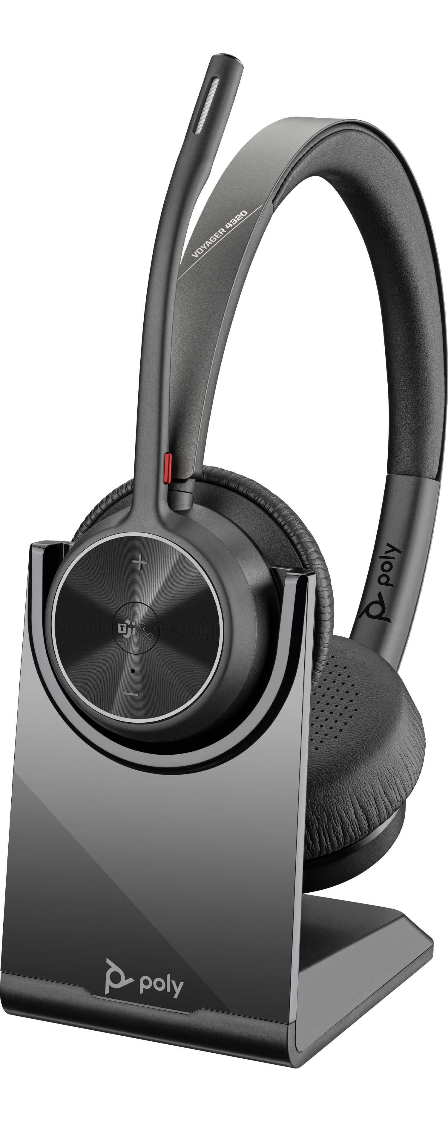 Poly Voyager 4320 MS Teams bezdrátová náhlavní souprava, BT700 USB-C adaptér, stereo, nabíjecí stojánek
