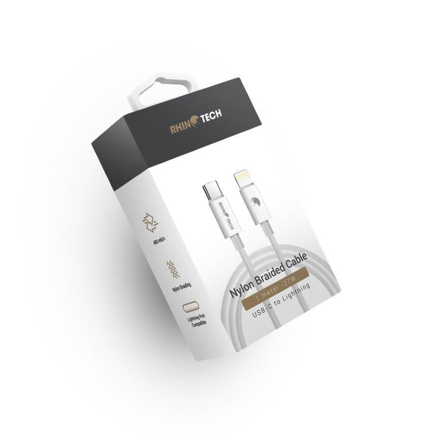 RhinoTech kabel s nylonovým opletem USB-A na Lightning 2,4A 1M bílá