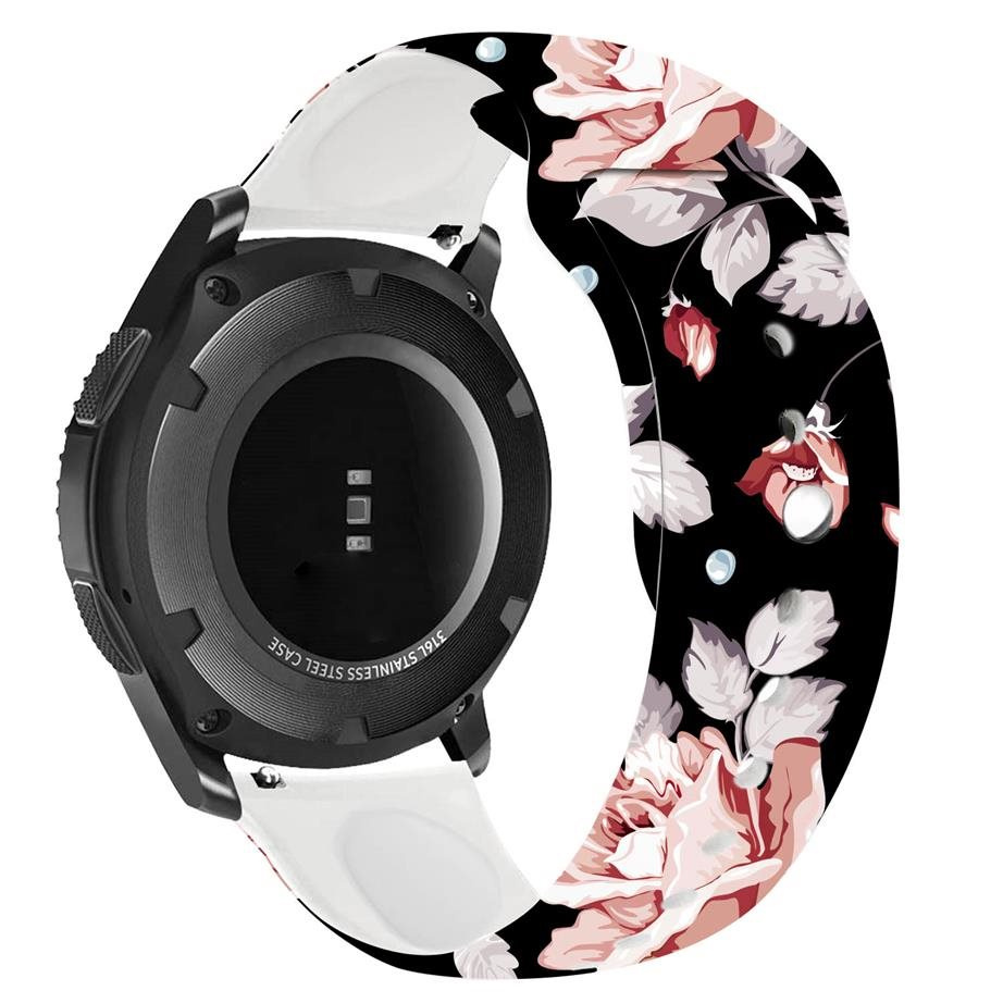 RhinoTech univerzální silikonový řemínek Quick Release černý s motivem květin 22mm