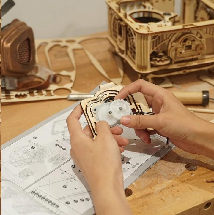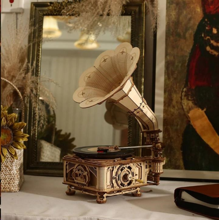 RoboTime 3D dřevěné mechanické puzzle Gramofon (elektrický pohon)