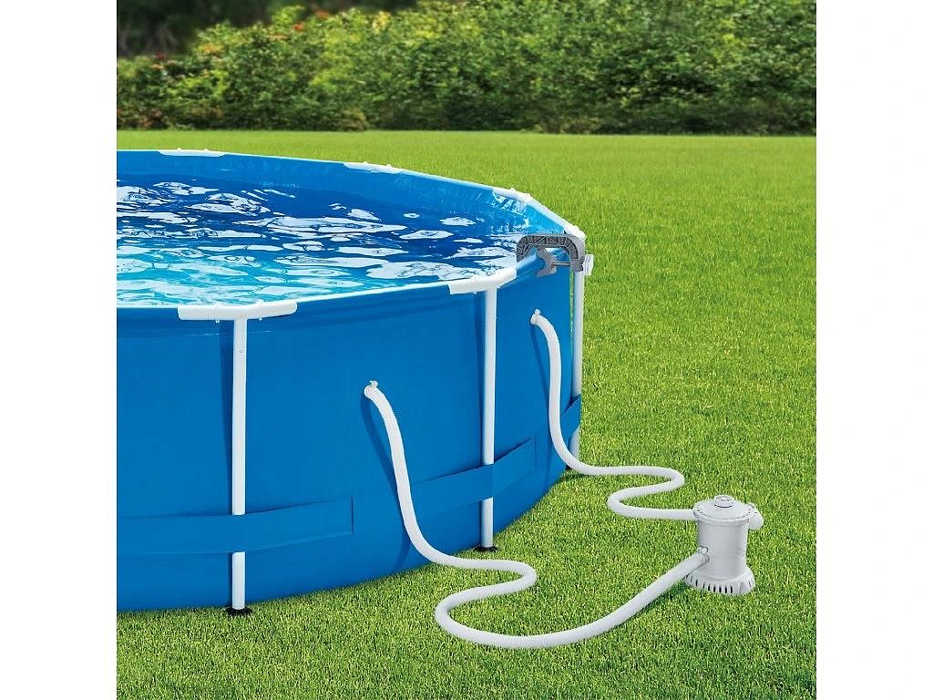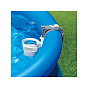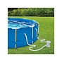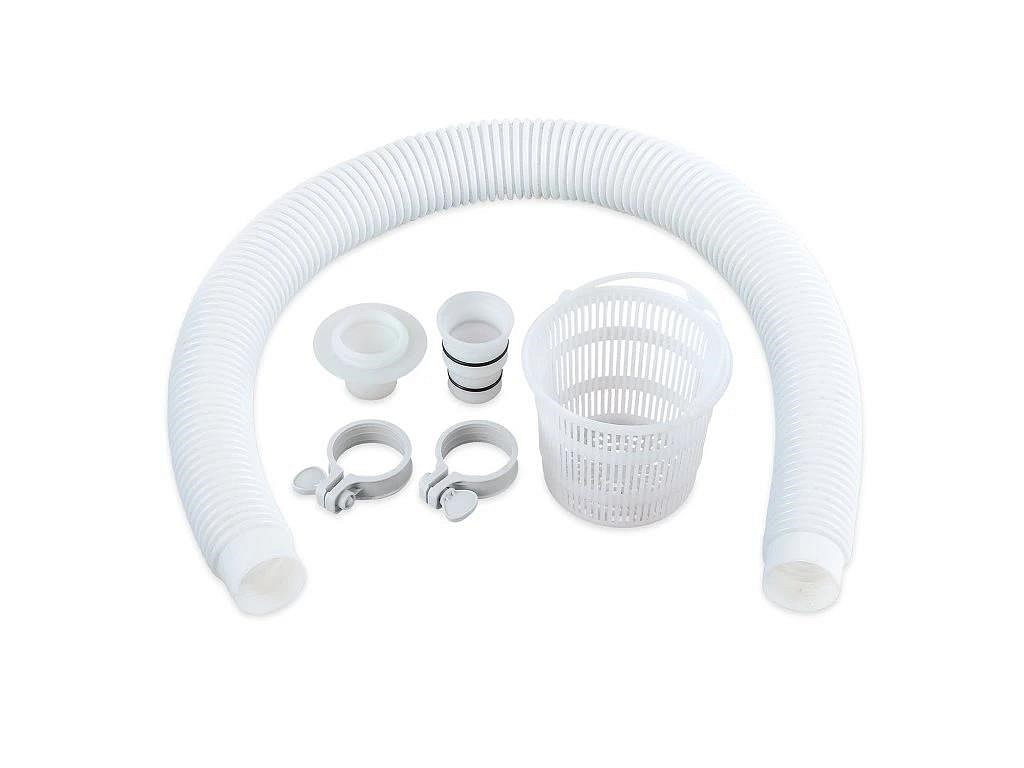Skimmer upevníte na nafukovací límec nebo pomocí výměnného držáku na rámový bazén. Propojovací hadicí spojíte skimmer s bazénovou tryskou (sací), kdy použijete přiložené adaptéry.