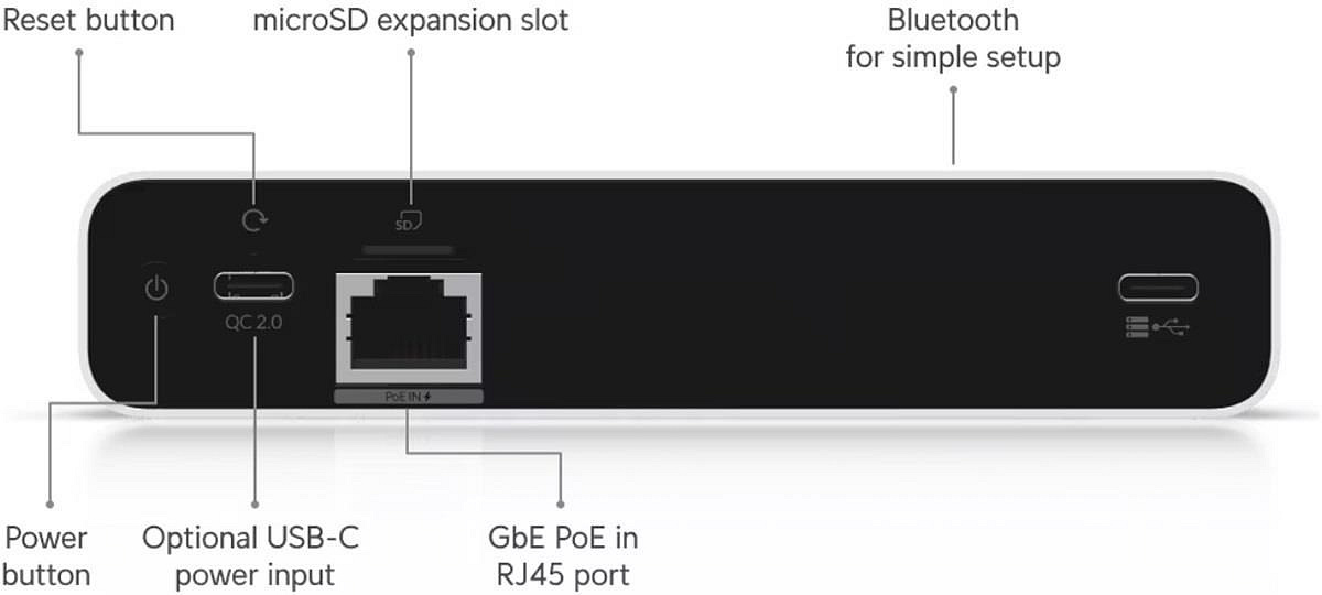 Popis produktu UniFi Cloud Key+ SSD kombinuje to nejlepší z lokální a cloudové správy zařízení. Má předinstalované UniFi aplikace (UniFi Network, UniFi Protect, UniFi Access, UniFi Connect a UniFi Talk) pro správu a nastavení UniFi produktů. Přední displej zobrazuje základní informace o vaší síti, například počet připojených AP a klientů, nebo čas poslední detekce pohybu. Podporuje Bluetooth pro rychlou konfiguraci přes mobilní aplikace. Video záznam z kamer se ukládá přímo na vestavěný 1 TB SSD, který lze vyměnit za disk s vyšší kapacitou. Cloud Key+ podporuje pouze disky, které fungují s napájením 5 V. Disky, které vyžadují dodatečné nebo vyšší napájení, nejsou podporovány. Navíc má integrovanou baterii, která při ztrátě napájení zaručí bezpečné ukončení všech běžících procesů a vypnutí zařízení. Vlastnosti • Přední displej • Zabudovaná baterie pro bezpečné vypnutí • Napájení přes PoE 802.3af (48 V injektor) nebo USB-C (9V / 2A DC adaptér) - nejsou součástí balení • Jednoduché nastavení pomocí telefonu Počet podporovaných kamer: (24) HD, (14) 2K, (8) 4K Obsah balení • Zařízení Technické parametry Konektory a rozhraní Sériový port:RJ45 Napájení Napájení přes PoE:802.3af Typ napájení:PoE, USB-C Max. spotřeba energie [W]:9,6 Napájení přes konektor/svorkovnici:9V / 2A Fyzické charakteristiky Provedení:Desktop Tlačítka:Reset, napájení Provozní teplota [°C]:0 až 35 Hmotnost [g]:560 Šířka [mm]:131 Výška [mm]:27 Hloubka [mm]:134 Hardware CPU:ARM Cortex-A53 RAM [MB]:3 Software Předinstalovaný kontroller:UniFi Protect, UniFi Network, UniFi Access.