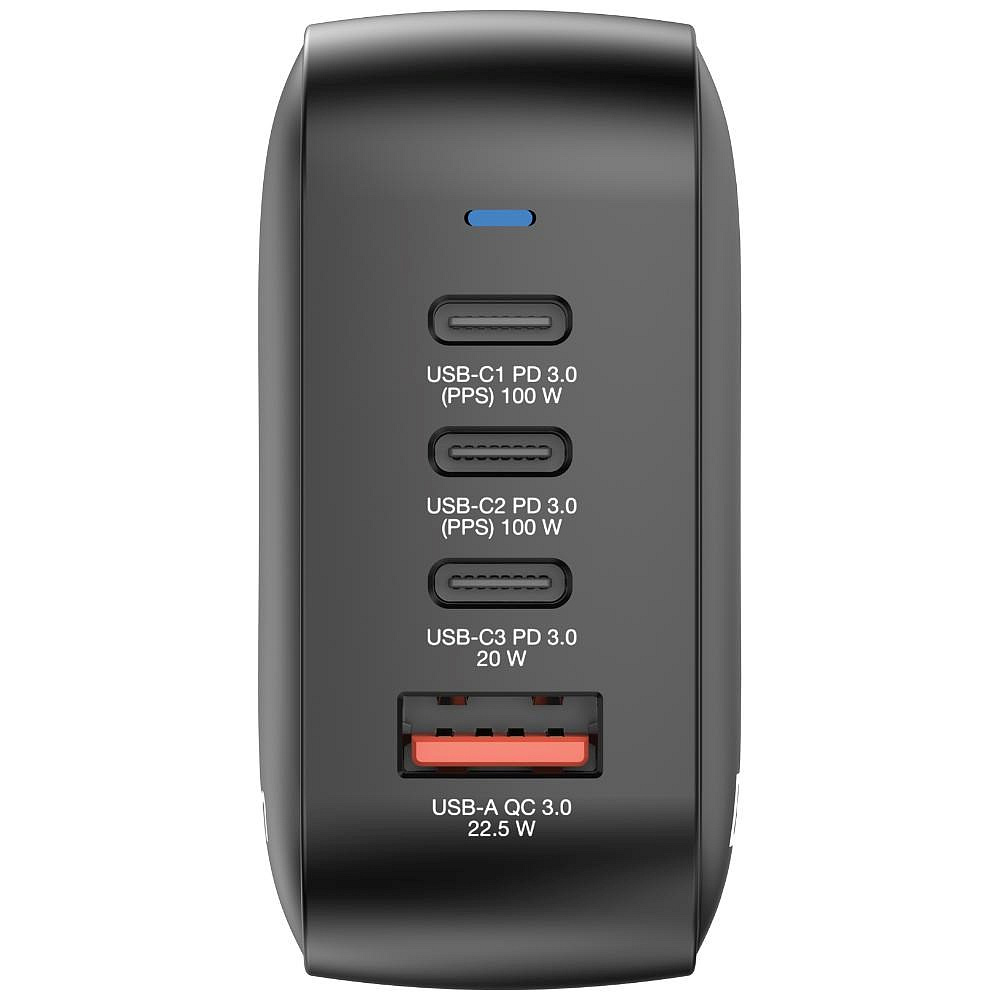 - 100W miniaturní nástěnná nabíječka se 4 výstupními porty: 2 x USB-C® PD 100W, 1 x USB-C PD 20W a 1 x USB-A QC 3.0
