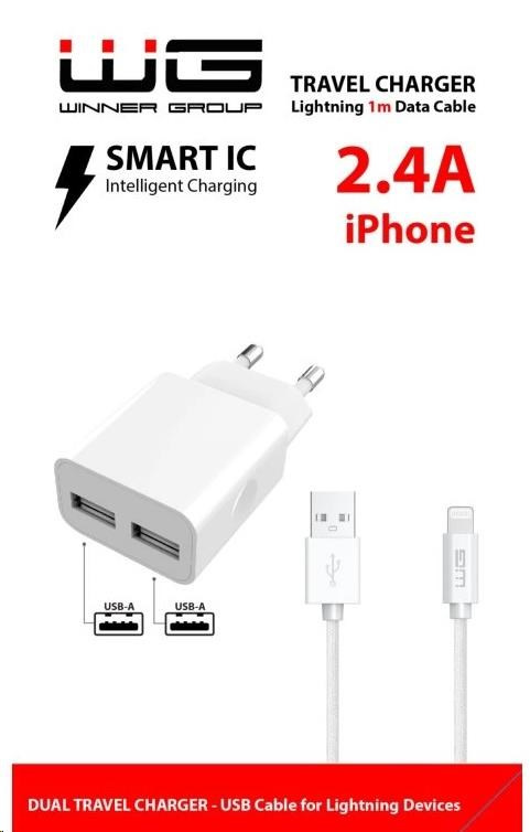 WG - Síťová nabíječka 2x USB-A 2,4A , Smart IC + kabel USB-A na Lightning, white